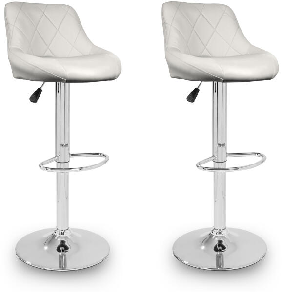 Aga 2x bárszék Bézs, Modern kialakításának köszönhetően a bárszék gyönyörű darabja lesz konyhájának vagy étkezőjének. A szék magassága gázdugattyúval állítható, így az Ön igényeihez igazíthatja. A szék ülése műbőrrel van párnázva, és könnyen tisztítható. A szék praktikus lábtartóval rendelkezik, krómozott fémből. A kör alakú talapzat és a középső láb fényes krómból készült.   A bárszéket magáncélú használatra tervezték. Az Aga bárszék specifikációi.   Jellemzők és funkciók:Stabil és minőségi kivitelezés Állítható magasságú ülés 360°-ban forgatható ülés A műbőr nagyon könnyen tisztíthatóParaméterek:Anyag : krómozott acél, öko bőr Tömeg kb. : 7 kg Ülésmagasság a talajtól: kb. 60-80 cm Teljes magasság: kb. 85 - 105 cm Az ülés mérete: 48 x 37 cm Háttámla mérete: 40 x 27 cm A kör alakú talp átmérője: 38,5 cm Terhelhetőség: 100 kg Székek száma: 2 Gyártó Garancia: 24 hónap
