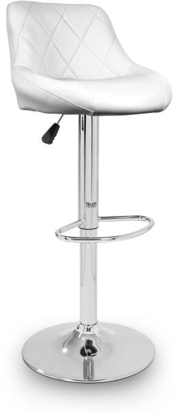 Aga bárszék fehér, A bárszék modern kialakításának köszönhetően gyönyörű darab lesz a konyhájában vagy az étkezőjében. A szék magassága gázdugattyúval állítható, így igényei szerint testre szabhatja. A szék ülőfelülete műbőrrel van párnázva, amely könnyen tisztítható. A széknek praktikus lábtartója van krómozott fémből. A kör alakú talp és a központi láb fényes króm.  A bárszék magáncélú használatra készült. Aga bárszék specifikációi.  Tulajdonságok és funkciók: Stabil és minőségi kidolgozás Magasságban állítható ülés Az ülés 360°-ban forgatható A műbőr nagyon könnyen tisztíthatóParaméterek: Anyag: Krómozott acél, öko bőr Súly kb. : 7 kg Ülőmagasság a földtől: kb. 60 - 80 cm Teljes magasság: kb. 85 - 105 cm Ülőfelület mérete: 48 x 37 cm Támla mérete: 40 x 27 cm Kör alap átmérője: 38,5 cm Teherbírás: 100 kg Székek száma: 1 Gyártó: Aga Garancia: 24 hónap