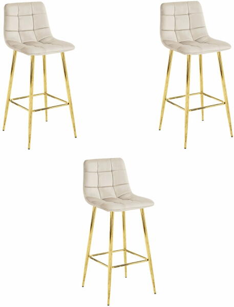 ARCETO bézs bársony bárszék arany lábakkal (3 darabos szett) ?✨ Ez a 3 darabos ARCETO bárszék szett tökéletes választás, ha modern és elegáns kiegészítőt keresel konyhádba vagy bárodba. A bézs bársony ülőfelület és az arany színű fém lábak kombinációja stílusos megjelenést kölcsönöz, miközben a kényelmes kialakítás gondoskodik a kellemes ülésélményről. Főbb jellemzők:Időtlen dizájn: Könnyen illeszkedik a legtöbb enteriőrbe. Ergonomikus kialakítás: Kényelmes ülőfelület és háttámla. Funkcionalitás: Tökéletes reggelihez, bárhoz vagy akár pótülésként vendégek számára. Tartósság: Minőségi anyagokból készült a hosszú élettartam érdekében. Méretek (+/- 1cm):Méret Érték (cm)Zsámoly magassága 102Ülőmagasság 76Zsámoly szélessége 43,5Ülőszélesség 43,5Ülőke mélysége 49Ülésmélység 32,5Specifikációk:Ülőfelület anyaga: Bársony Lábak: Fém, arany színű, fényes Súly: 5,1 kg / szék Maximális terhelhetőség: 110 kg / szék Lábtartó: A kényelmes használatért és a stabilitásért Az ARCETO bárszék nem csak stílusos, hanem praktikus is. A lábtartó biztosítja a kényelmes ülést, a könnyű összeszerelés pedig lehetővé teszi, hogy gyorsan élvezhesd az új székeidet. A modern megjelenésének köszönhetően számos enteriőrbe illik, stílusától függetlenül, így számos elrendezési lehetőséget kínál. Tökéletes ülőhely nemcsak reggelihez, hanem pótülésként is funkcionálhat a vártnál nagyobb számú vendég esetén egy megbeszélésen. ?