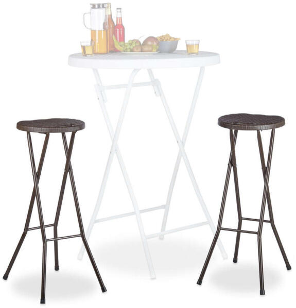 BASTIAN Összecsukható Kerti Bárszékek (2 db): Tökéletes kiegészítője a terasznak és a kertnek ? Élvezze a nyári estéket a kényelmes és stílusos BASTIAN összecsukható bárszékeken! Ez a 2 darabos szett ideális választás teraszra, kertbe vagy akár az erkélyre is. A sötétbarna színű, rattan megjelenésű polirattan ülés és a robusztus acélváz garantálja a tartósságot és az elegáns megjelenést. Főbb jellemzők:Könnyű összecsukhatóság: Egyetlen mozdulattal összehajtható, helytakarékos tárolás. ? Időjárásálló anyag: Kiváló minőségű polirattan (műanyag rattan megjelenésű) ülés, amely ellenáll az időjárás viszontagságainak. ☔ Robusztus acélváz: Stabil és biztonságos ülést biztosít, akár 120 kg-ig terhelhető. ? Kényelmes magasság: Ideális pultok, bárok és állóasztalok mellé. ? Könnyű hordozhatóság: Beépített fogantyú a könnyű szállításhoz. ? Méretek:Méret Kinyitva ÖsszecsukvaSzélesség 32,5 cm 32,5 cmMagasság 80 cm 105 cmMélység 29 cm 5 cmSúly: 2,4 kg Anyag: Acélkeret, polirattan (műanyag rattan megjelenésű) A BASTIAN bárszékek tökéletes választás mindenki számára, aki értékeli a minőséget, a kényelmet és a praktikus megoldásokat!