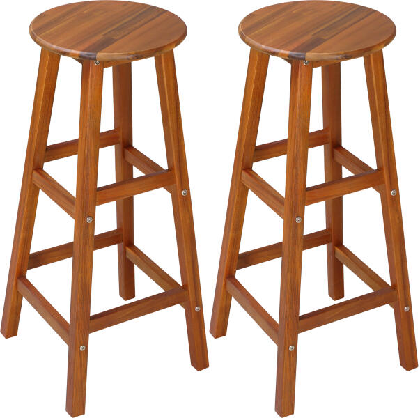 A gyarmati stílusú akácfa bárszékek megszépítik otthonát. A stabilitást a fa megerősítések garantálják. Az egyszerű kialakítás lehetővé teszi a gyors összeszerelést. Az elegáns bárszékek megfelelő hangulatot kölcsönöznek bárpultjának. Ideális a lakótérbe - a bárba - a kávézóba - a konyhába - a pultba - a kerthelyiségekbe - rendezvényekre - partikra! A termék előnyei:  akácfából készült teherbírás 120kg székenként ergonomikusan lekerekített ülőfelület a válaszfalak kényelmes lábtartóként szolgálnak könnyű és gyors összeszerelés ideális ülésmagasság bárpulthoz nagy ülőfelület Az akácfa jellemzői: ✔ erős és kemény ✔ nagy teherbírás ✔ változatos felhasználhatóság ✔ finom színezés Műszaki adatok: méretek (h x sz x m): 34 cm x 34 cm x 76 cm Ø ülőrész átmérője: Ø 30 cm anyag: akácfa