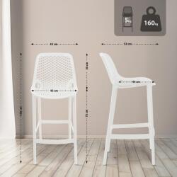 A kiváló minőségű, UV-álló polipropilénből készült Air bárszék lenyűgöz időjárásállóságával. Ez azt jelenti, hogy a szék nem csak beltéren, hanem kültéren is használható. A szék ezért kiváló választás kerti széknek, teraszra vagy erkélyre is.