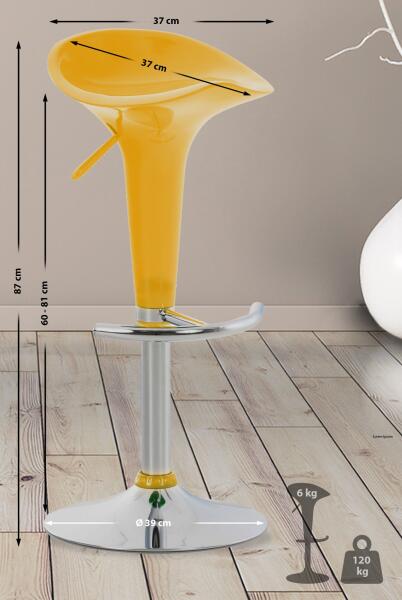 A bárszék Saddle modern dizájnjával és erőteljes színeivel lenyűgöző, amelyek fiatalos bájt árasztanak. A gázliftnek köszönhetően ez a modell fokozatmentesen állítható magasságú, ezért univerzálisan használható, és minden pultmagassághoz alkalmas. Az ülés 360°-ban elforgatható, az ergonomikus kialakítású ülés pedig alkalmazkodik az Ön testéhez, és kényelmesen ülhet órákon át. A műanyagnak köszönhetően ez a pultszék könnyen tisztítható. A fémből készült, krómozott megjelenésű trombitatalp lábtartóval van felszerelve, amely támogatja az üléskényelmet. Az alaplemez alatt egy gumigyűrű található, amely megakadályozza a padló sérülését.