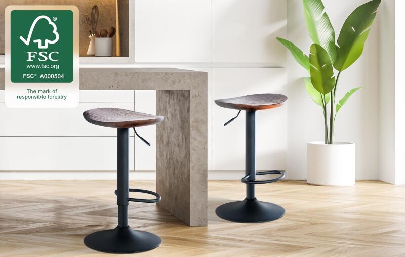 A pultszék ülőfelülete teljes egészében FSC-tanúsítvánnyal rendelkező termesztésű tömörfából készült. Jó szilárdsági tulajdonságaival ideális minőségi bútorok gyártásához. A fekete matt fémből készült keret kényelmes lábtartóval rendelkezik, emellett rendkívül kíméletes a padlóhoz, így nem károsítja az érzékeny padlót.