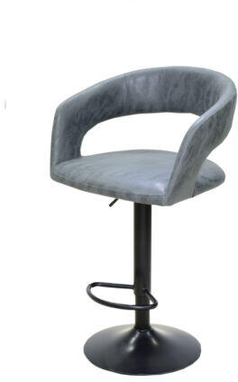 Gázrugóval állítható magasságú, lábtartóval ellátott bárszék. Fekete színű fém lábbal és talppal valamint szürke PU kárpitozással. Az ülőlap forgatható.