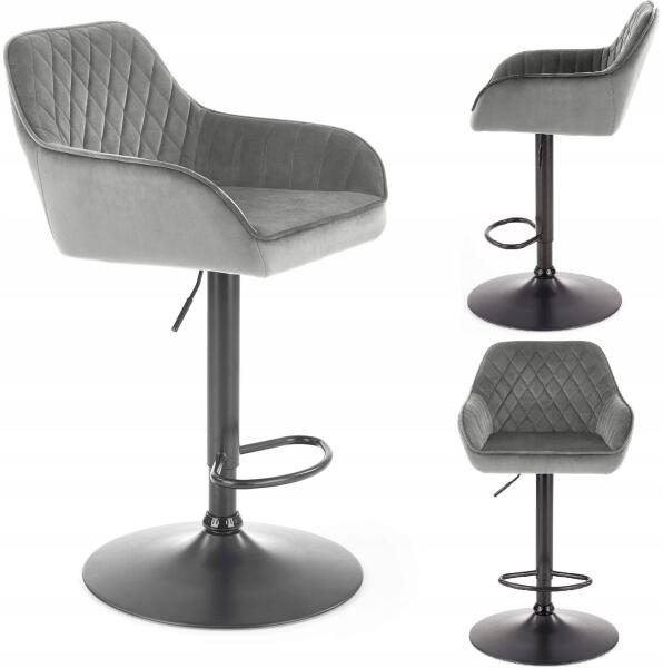 Halmar H-103 Szürke Bársony Bárszék: Stílus és Kényelem Egyben! ? Ez a forgó bárszék tökéletes választás bárokba, konyhákba vagy éttermekbe, ötvözve a modern dizájnt a kényelmes használattal. Főbb Jellemzők:Kényelmes ülés és háttámla: Szürke bársony kárpitozás a maximális komfortért. Állítható magasság: Pneumatikus mechanizmussal könnyedén beállítható a kívánt magasság. Tartós szerkezet: Porszórt acél váz a stabilitásért és hosszú élettartamért. Stílusos megjelenés: Loft és glamour stílusú belső terekbe is remekül illik. Méretek:Méret ÉrtékSzélesség 55 cmMélység 55 cmTeljes magasság 92-114 cmÜlésmagasság 62-84 cmÜlésszélesség 39 cmÜlésmélység 42 cmAnyag:Ülés és háttámla: Puha és tartós szürke bársony huzat. Váz: Fekete porszórt acél a modern és tartós megjelenésért. Bársony – A Tökéletes Választás: A bársony anyag puha, kellemes tapintású és rendkívül tartós. Ellenáll a szakadásnak és a nyúlásnak. Könnyen tisztítható, így ideális választás a mindennapi használatra. Porszórt Acél Lábazat: A porszórt acél lábazat nem csak stabil és tartós, hanem esztétikus is. Kiemelkedő ellenállás a karcolásokkal és a kopással szemben. Jobb vizuális hatás, mint a hagyományos lakkozás.