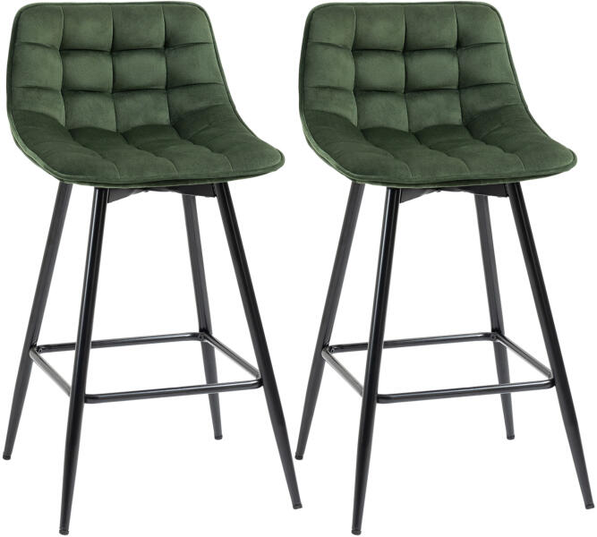 HOMCOM Skandináv stílusú bárszék szett - Kényelem és elegancia otthonodba! ? Dobd fel otthonod hangulatát ezzel a stílusos és kényelmes bárszék szettel! A HOMCOM 2 darabos bárszék szettje tökéletes választás étkezőbe, konyhába vagy akár bársarokba. A skandináv design és a bársony kárpitozás garantáltan feldobja a helyiséget. Főbb jellemzők:Északi stílus: Könnyen illeszkedik bármilyen otthoni dekorációhoz. Kényelmes ülőfelület: A párnázott ülés maximális komfortot biztosít. Ergonomikus kialakítás: Az ívelt háttámla és a lábtartó segít a helyes testtartásban és a kényelmes ülésben. ? Puha bársony kárpitozás: Tartós és könnyen tisztítható. Stabil fém lábak: Biztosítják a székek stabilitását és hosszú élettartamát. ? Műszaki adatok:Jellemző ÉrtékSzín ZöldAnyag Poliészter, FémTeljes méret 45 x 47 x 84 cmÜlésméret 42,5 x 35 cmÜlésmagasság 61 cmLábtartó magasság 23 cmHáttámla mérete 42,5 x 22,5 cmTeherbírás 120 kgA csomag tartalma: 2 db bárszék 1 db összeszerelési útmutató Élvezd a kényelmet és a stílust a HOMCOM bárszék szettel! ✨
