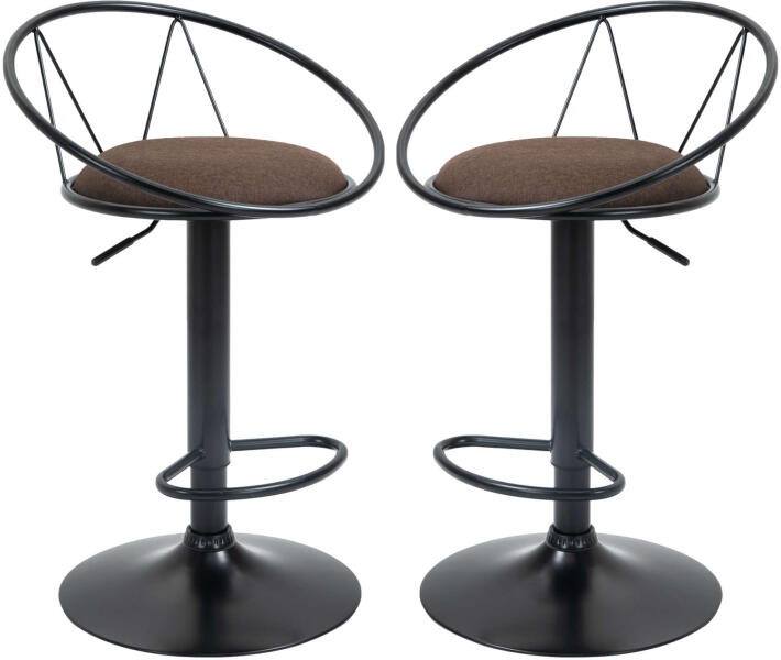 Homcom 2 db bárszék, forgók, lábtartó, állítható magasság, 51x46x78-100cm, barna