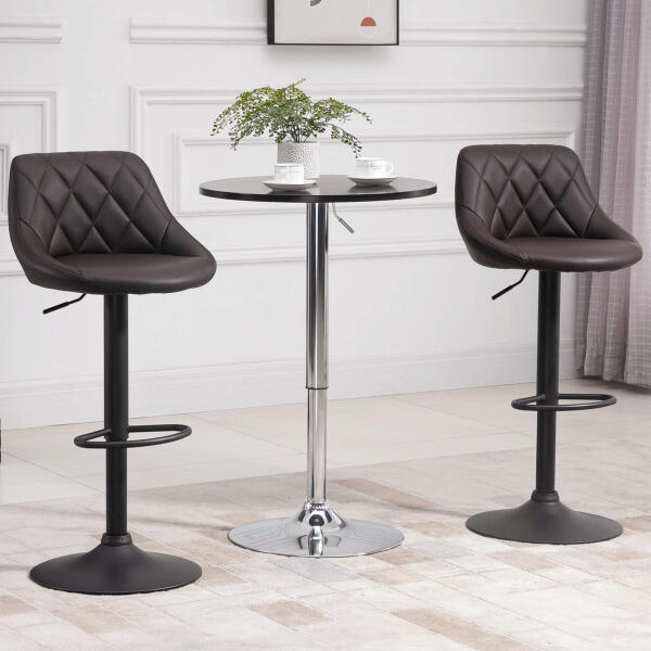 Homcom 2 db bárszék készlet, forgatható, állítható magasságú, öko bőr/fém, 51, 5 x 48 x 83-104 cm, barna/fekete