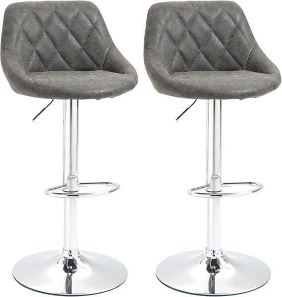 Elegáns, Állítható Magasságú Bárszékek (2 db) - Sötétszürke Kényeztesse magát és vendégeit ezzel a két darabos, elegáns bárszékkészlettel! A modern dizájn és a kiváló minőségű anyagok tökéletes kombinációja garantálja a kényelmet és a stílust. Ideális otthoni bárpulthoz, de akár vendéglátóhelyekre is. Főbb jellemzők: ? Gyémánt varrás: Elegáns és modern megjelenés ? 360° forgatható: Könnyű mozgás és kényelmes használat ↕️ Állítható magasság: Tökéletesen illeszkedik bármely pult magasságához (83-104 cm) ? Integrált lábtámasz: Optimális kényelem hosszabb ülés esetén ☁️ Puha poliészter kárpitozás: Kényelmes és tartós ülés ? Robusztus fémváz: Stabil és biztonságos konstrukció ? Csúszásgátló lábak: Védik a padlót a karcolásoktól ? 120 kg teherbírás: Biztonságos és megbízható Műszaki adatok:Tulajdonság ÉrtékSzín SötétszürkeAnyag Poliészter / FémTeljes méretek (LxSzxA) 51,5 x 48 x 83-104 cmÜlés mérete (LxSzxA) 51,5 x 36 x 60-81 cmAlap átmérője 41 cmÖsszeszerelés szükséges.