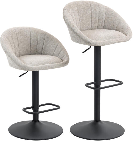 Homcom 2 db-os állítható magasságú bárszék szett, szövet forgószék és lábtartó, bézs