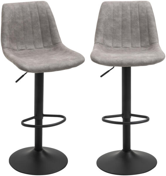 HOMCOM Ipari Stílusú Állítható Bárszék Szett (2 db) - Kényelem és Elegancia Egyben! ? Dobd fel bárod, konyhád vagy pubod hangulatát ezzel a stílusos és kényelmes bárszék szettel! A HOMCOM bárszékek nem csak jól néznek ki, de a maximális kényelmet is biztosítják. Főbb Jellemzők:Vintage stílusú bárszék szett, mely tökéletesen illeszkedik bármilyen enteriőrbe. Állítható magasság: Könnyedén beállíthatod a számodra ideális magasságot a beépített kar segítségével (59-80cm). 360°-ban forgó ülés: Élvezd a teljes mozgásszabadságot. Ergonomikus háttámla: A vastag habszivacs bélés és a mikroszálas bevonat gondoskodik a kényelmes ülésről. Beépített lábtartó: A még nagyobb kényelemért. Stabil kialakítás: A kerek fém talp csúszásgátló lábakkal van ellátva a biztonság érdekében. Műszaki adatok:Jellemző ÉrtékSzín Szürke, FeketeAnyag Mikroszál, Hab, Acél, FaTeljes méret 43 x 46,5 x 89-110cmÜlőfelület mérete 43 x 36,5cmÜlésmagasság 59-80cmLábtartó magassága 21-42cmTeherbírás 120kgA csomag tartalma: 2 db bárszék 1 db használati útmutató Élvezd a kényelmes és stílusos bárszékeket, melyek tökéletesek egy ital elfogyasztásához vagy egy kellemes beszélgetéshez! ?