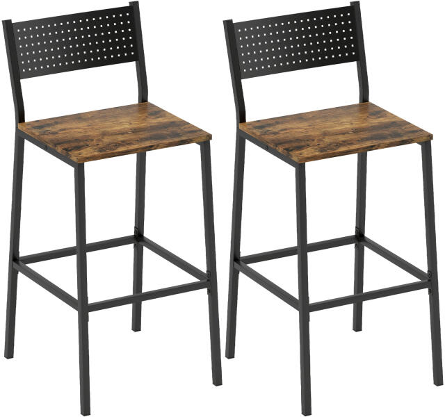 Homcom 2 db-os bárszék szett háttámlával és beépített lábtartóval, ipari stílusú, rusztikus barna