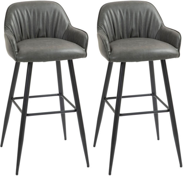 Homcom 2 db-os bárszék szett PU bőrből, magas bárszék lábtartóval, 52x53x99 cm, sötétszürke