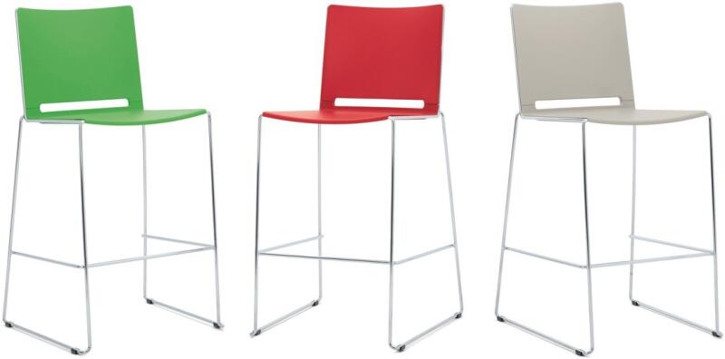LAFILÓ STOOL krómozott tömör acél lábszerkezetű rakásolható (5) bárszék. Műanyag ülés és háttámlával.