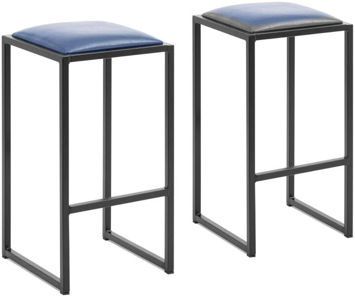 Loft fém bárszék fekete és kék kárpitozással - 2 db