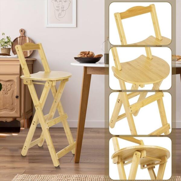 Quasar & Co. összecsukható bambusz bárszékek (2 db): Tökéletes kiegészítő otthonába és bárhova ? Kényelmes, stílusos és praktikus bambusz bárszékek 2 darabos készletben. Ideálisak a konyhába, nappaliba, erkélyre, de akár kempingezéshez vagy rendezvényekhez is. Könnyen összecsukhatóak és tárolhatóak, így helytakarékos megoldást kínálnak. Főbb jellemzők:Tömör bambusz: Strapabíró, tartós és természetes anyagból készültek. ? Ergonomikus kialakítás: Kényelmes ülést biztosítanak a hát ívéhez illeszkedő háttámlának köszönhetően. ? Összecsukható: Helytakarékos tárolás és könnyű szállítás. ✈️ Stabil és erős: 120 kg-ig terhelhetőek. ? Modern és klasszikus dizájn: Elegáns megjelenés bármilyen környezetben. ✨ Könnyű tisztítás: Nedves ruhával könnyen tisztítható a felületük. ? Méretek:Jellemző Méret (cm)Teljes magasság 96.5Ülésmagasság 74.5Szélesség 28Mélység 37Ülés méretei 36 x 30Tökéletes választás: Konyhai pulthoz Bárokhoz Éttermekbe Rendezvényekre Kempingezéshez Otthoni használatra A Quasar & Co. bambusz bárszékekkel frissítse fel otthonát!