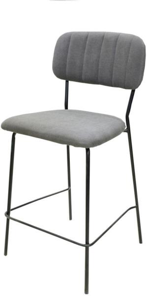 Letisztult vonalú, modern, fémvázas bárszék, amely elegánsabb enteriőrökben is jól mutat. Az ülőlap és a hátlap textil kárpitozással készült. Lábtartó biztosítja a kényelmes használatot. Magassága fix.  Méretei: 96x47x51 cm, terhelhetősége 110 kg. Az ülőlap 50x45 cm-es, a háttámla 30 cm magas.