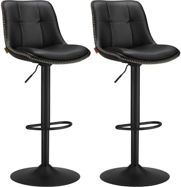 Bárszék szett, 2 db-os bárszék szett, állítható magasságú, forgó konyhai szék, steppelt PU huzat, háttámlával és lábtartóval, étkezőpult, acél, tintafekete