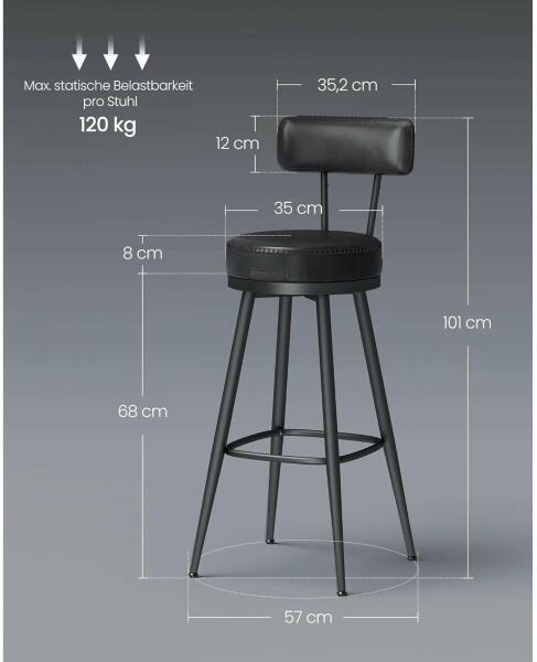 VASAGLE EKHO 360°-ban forgatható bárszék 2 darabos szett, 76 cm magas, tintafekete színben (LBC889B01V1) - pepitaPepita.hu